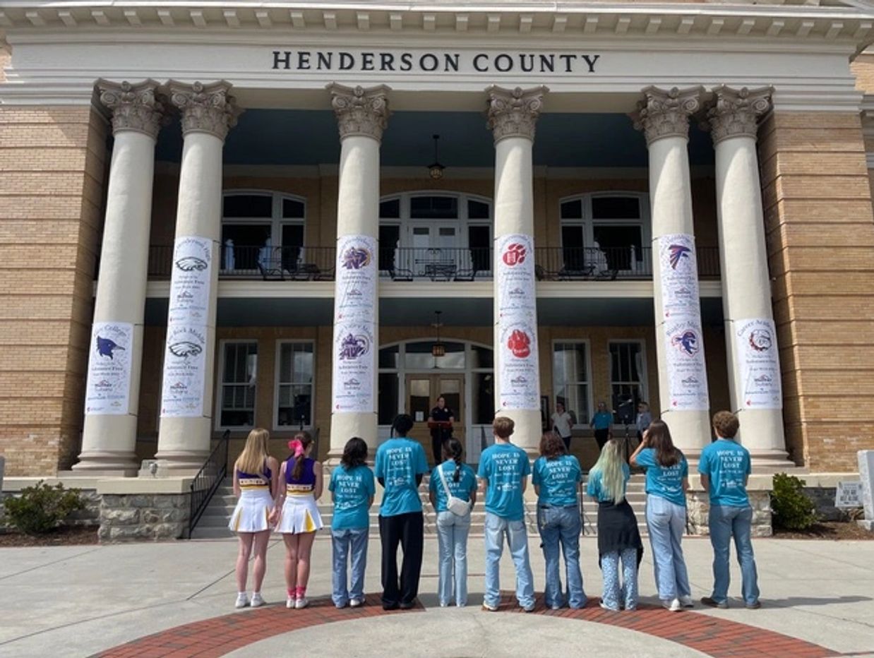 #WeAreHope week culminates with a banner-hanging event at the Historic Henderson County Courthouse, featuring speakers from local government, law enforcement, and other community leaders.